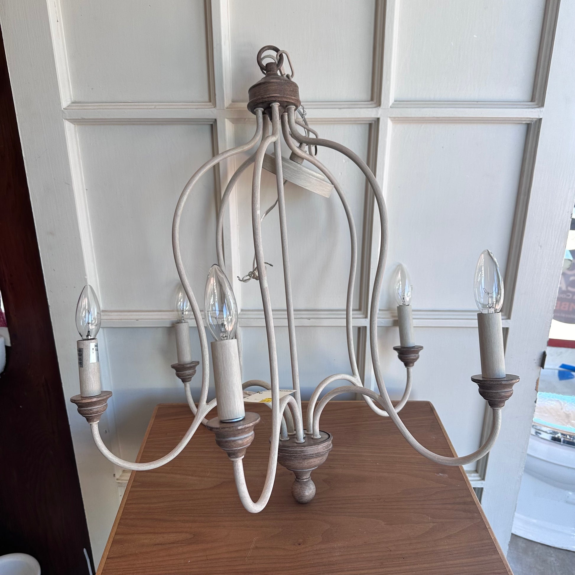 The Feiss Hartsville five light single tier chandelier in chalk washed / beachwood provides abundant light to your home, while adding style and interest. The sweeping silhouette of the Hartsville lighting collection by Feiss was inspired by the farmhouses and country life of the Colonial American heartland. With soft, distressed finishes of Dark Weathered Zinc coupled with Weathered Oak detailing or a Chalk Washed finish paired with Beachwood detailing, these designs are perfect in any number of settings from traditional to coastal casual decor.