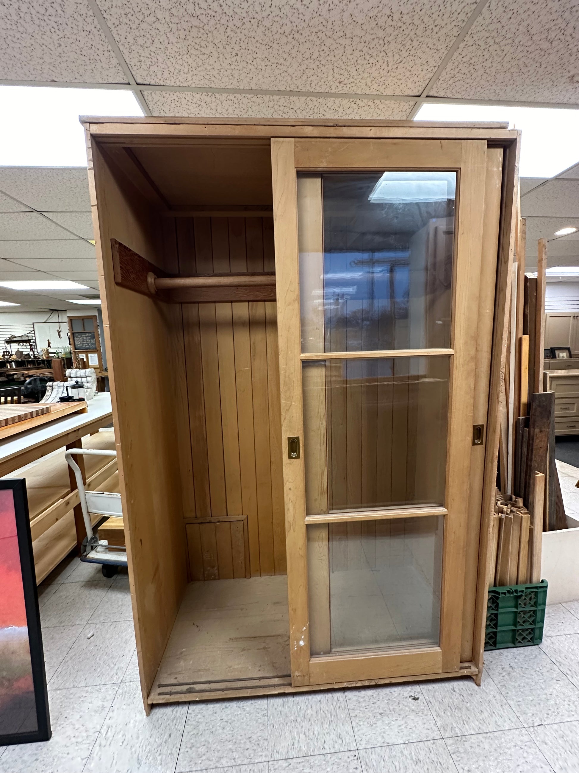 Cedar Closet with 2 sliding doors with old fashioned wavy glass. Originally from a 1927 house. In great condition!