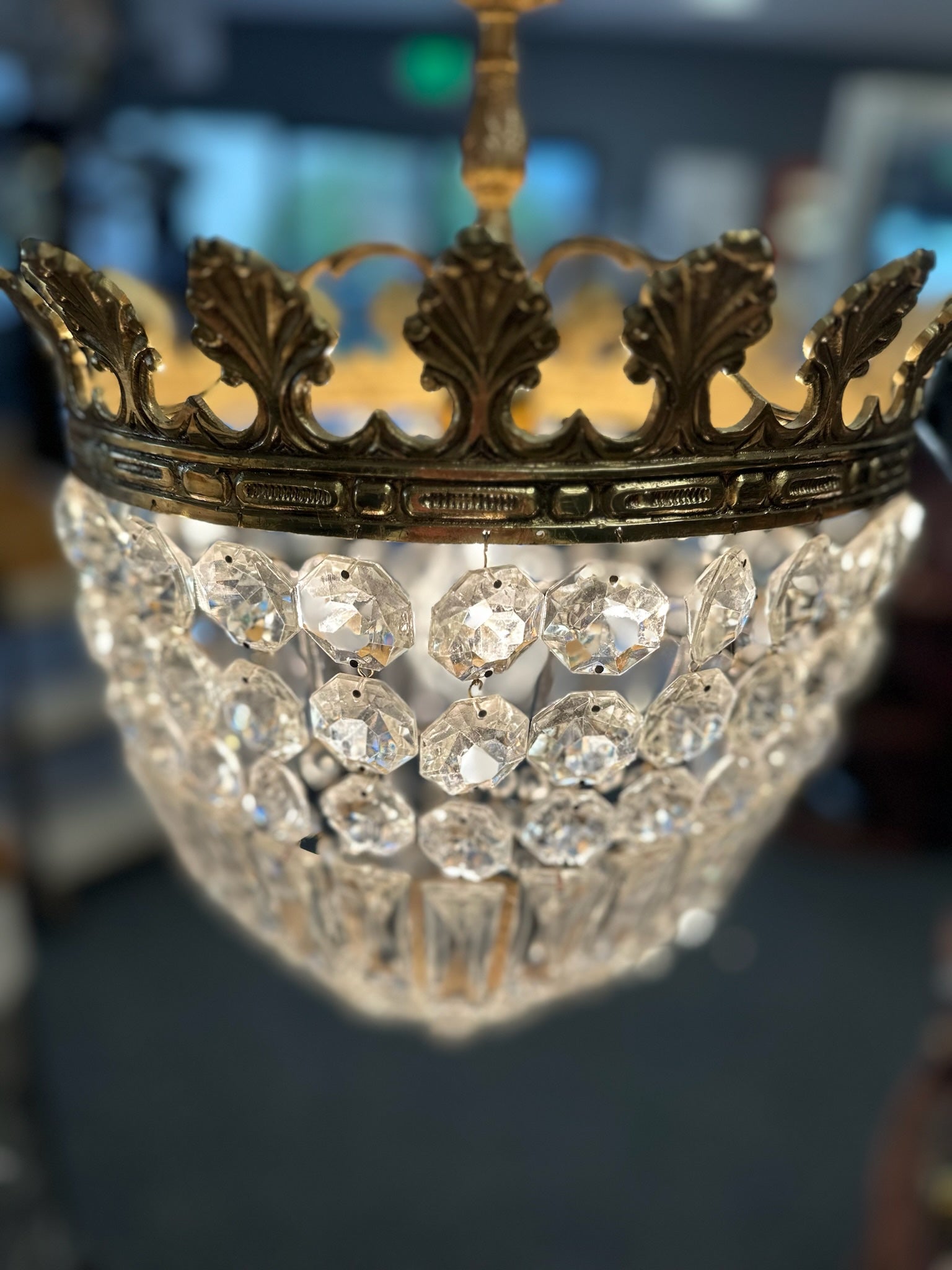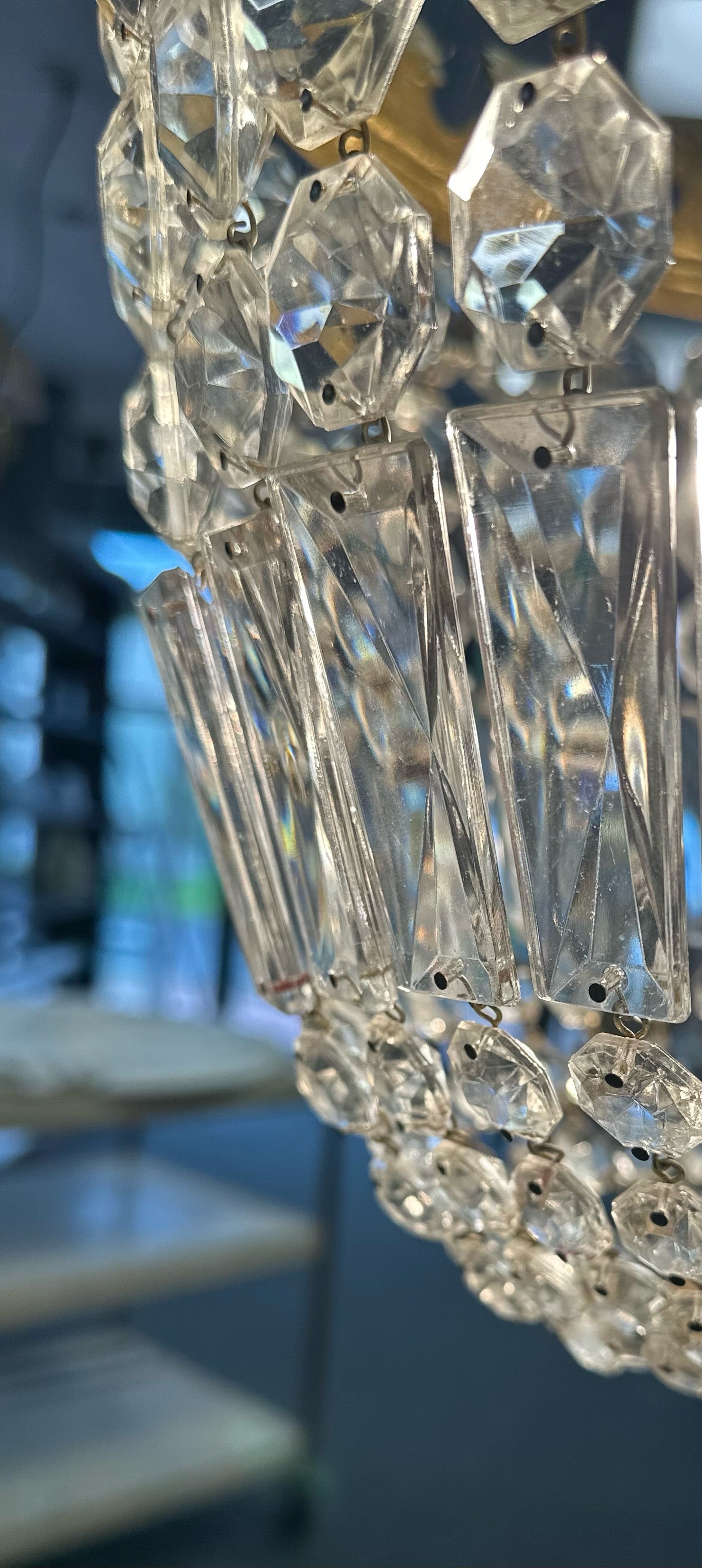 Crystal Pendant Chandelier. This piece casts a beautiful pattern on the ceiling.