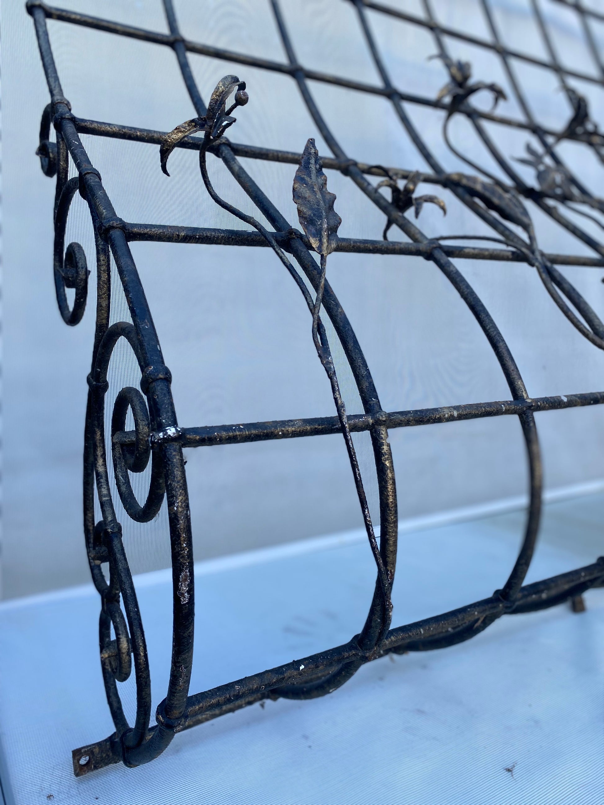 Decorative arched window railing from a large window on a home built in 1927 Hillsborough, CA. This would make for a lovely garden trellis or interesting outdoor element.