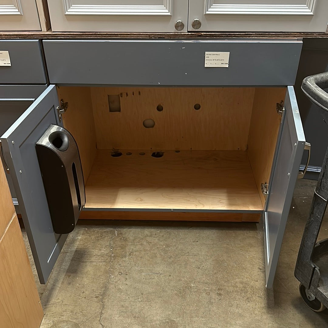 Sink Base; Cutouts for plumbing. False drawer front, 2 doors
