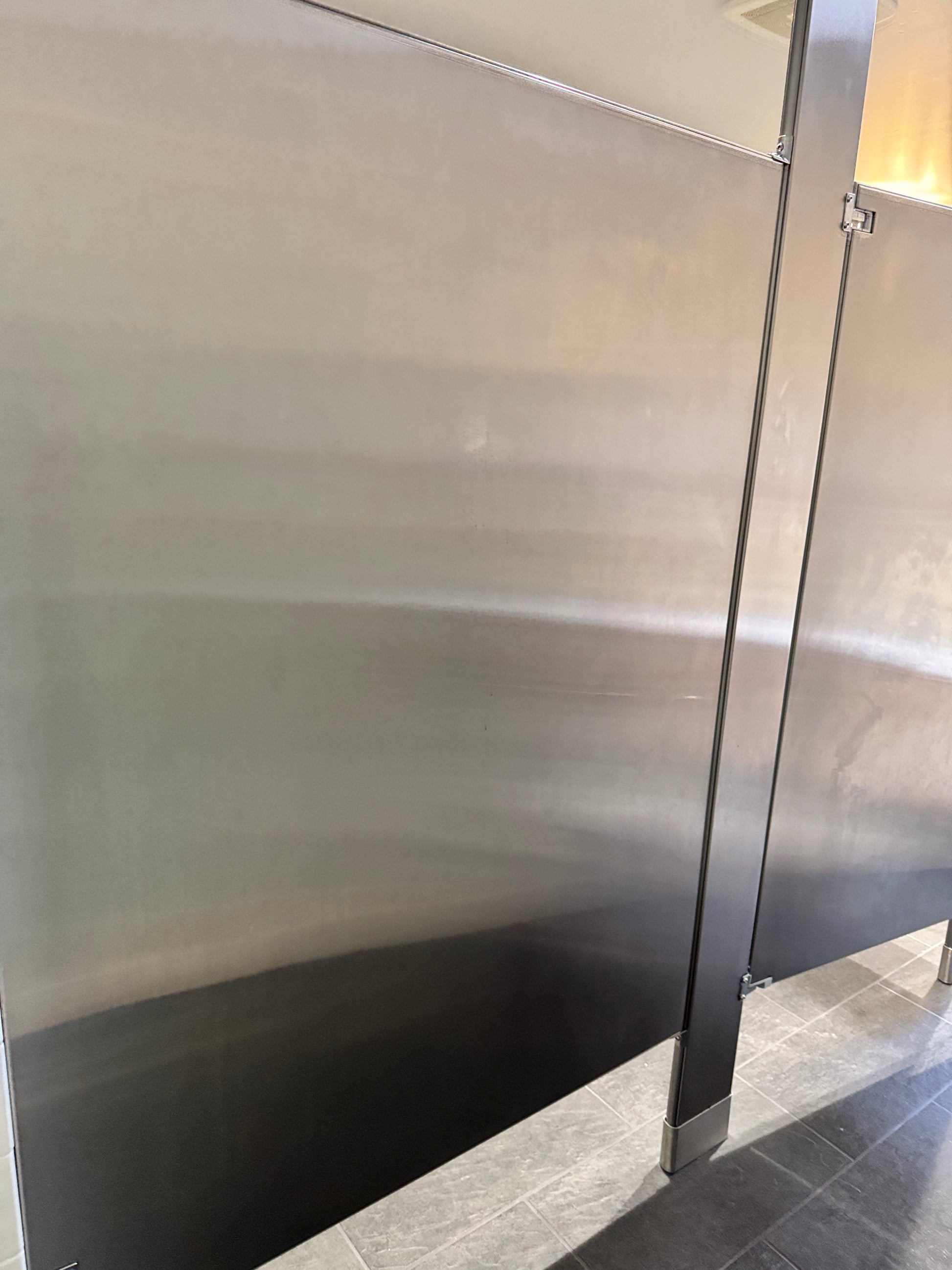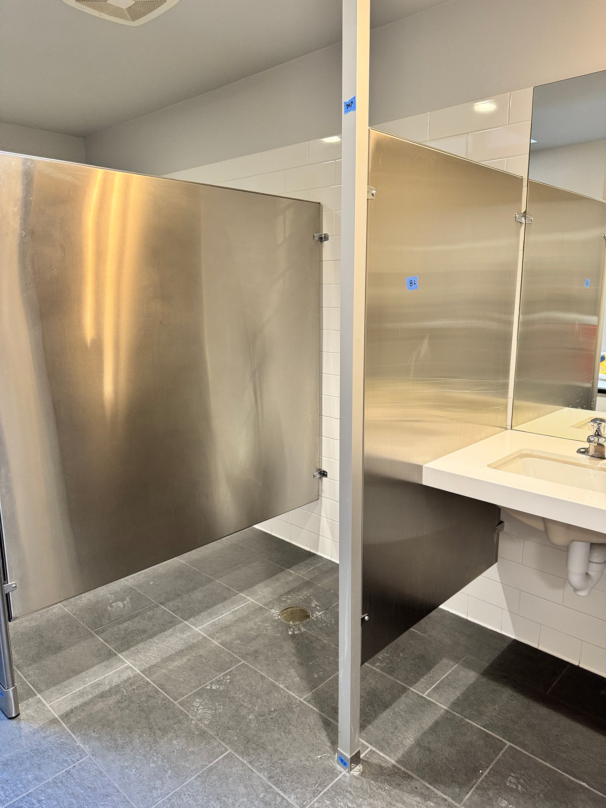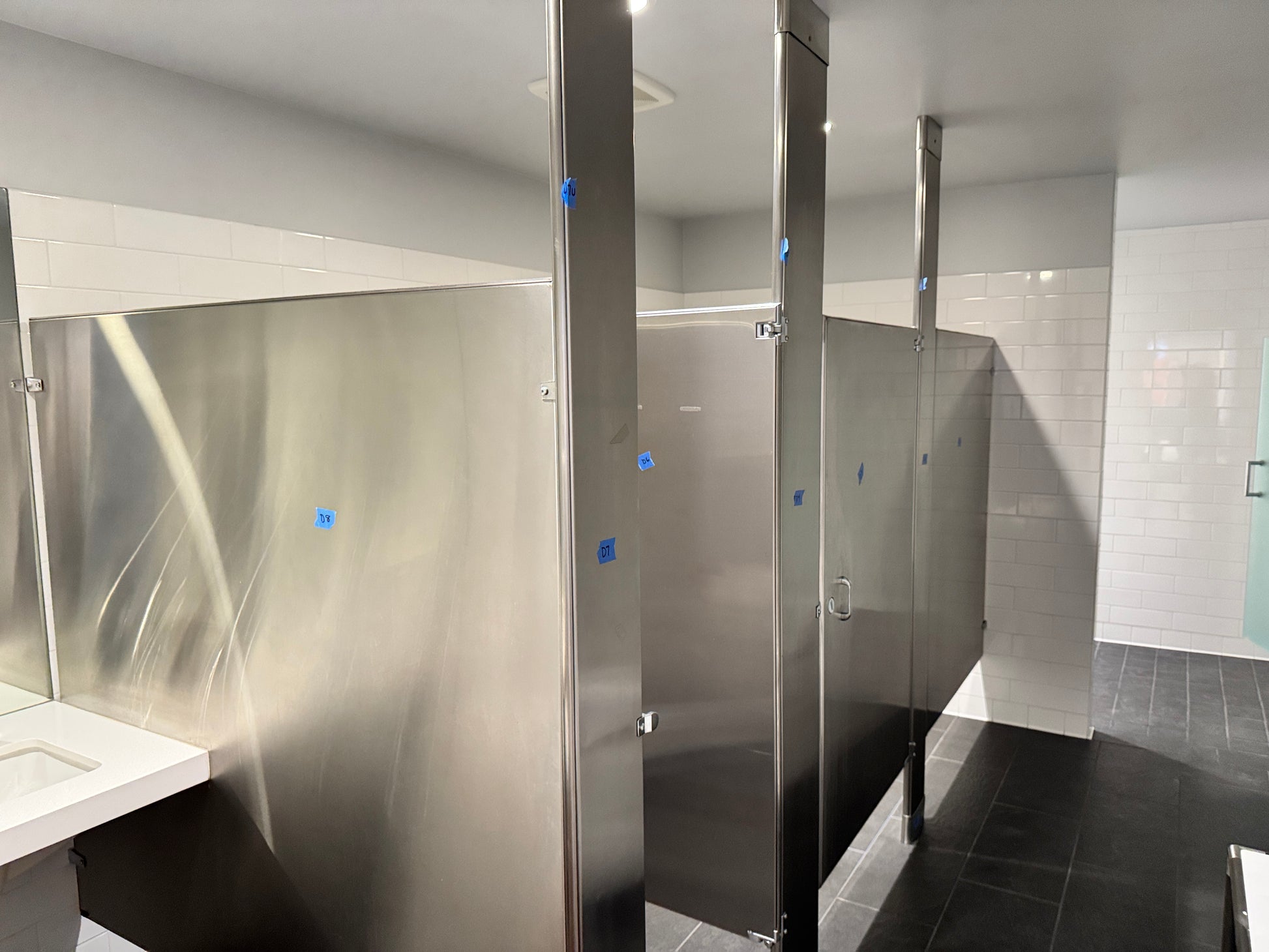 | A | Mens | stainless steel single stall 62 x 92 door opens out and swings left, Panel a1 against wall on left panel a5 on wall right | |||||